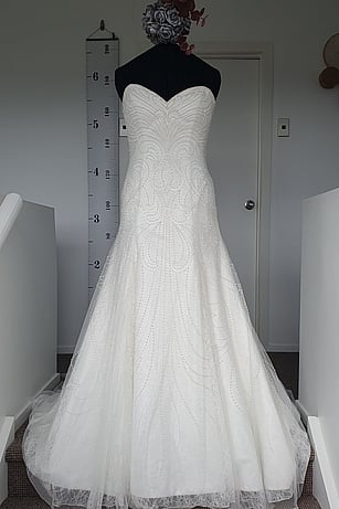 At Wedding Dress for Less it's easy to find beautiful pre-loved wedding gowns that fit any style or budget. Many dresses have only been worn once, some only tried on, and others are still new with tags. Each dress is carefully checked and refreshed as needed before listing, so you can trust what you see is exactly how it will arrive. Because every wedding dress is second hand, only one of each is available in the size shown.