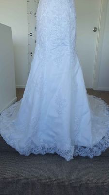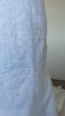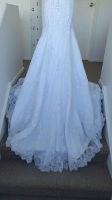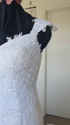 In excellent pre-loved condition, was tried on but hasn't made it down the aisle before. Minor discolouration inside the bodice but not visible when worn.