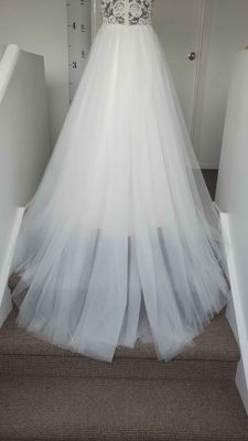 The bodice is paired with a simple tulle A line style skirt, with train.