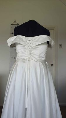 Wedding dress sizes are tricky. Please check your measurements against the mannequin measurements listed above to see if this dress could be a good fit. If you would like me to set up the mannequin with your measurements to check if it fits please get in contact.