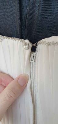 In good pre-loved condition, has been tried on and has a few marks at the bottom of the skirt, none of which are at the front. The tab of the zip has broken but there is no issues closing the dress with what remains.