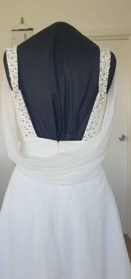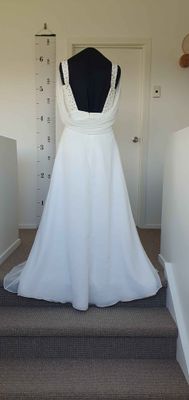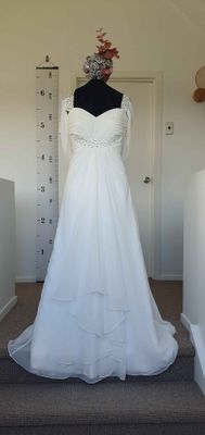 Wedding dress sizes are tricky. Please check your measurements against the mannequin measurements listed above to see if this dress could be a good fit. If you would like me to set up the mannequin with your measurements to check if it fits please get in contact.